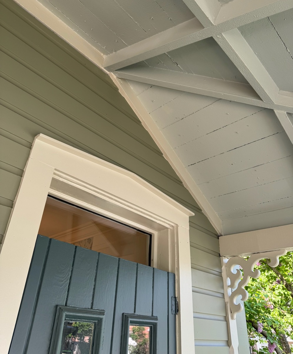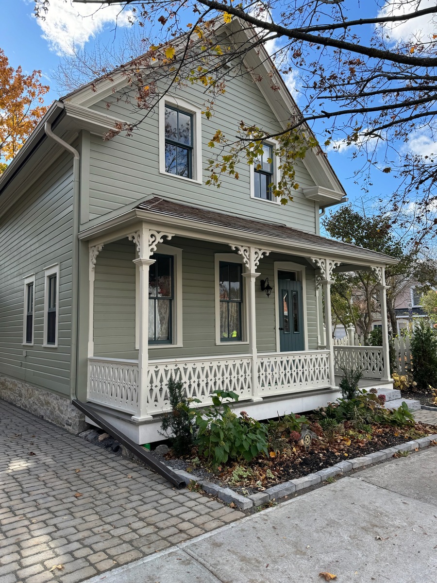 Acquired in 2020, this heritage-designated house underwent a meticulous restoration guided by heritage best practices. Its millwork, stone foundation, porch, roof, and windows were repaired or faithfully recreated, while the exterior was refinished in historically accurate colours and surrounded by native plantings.